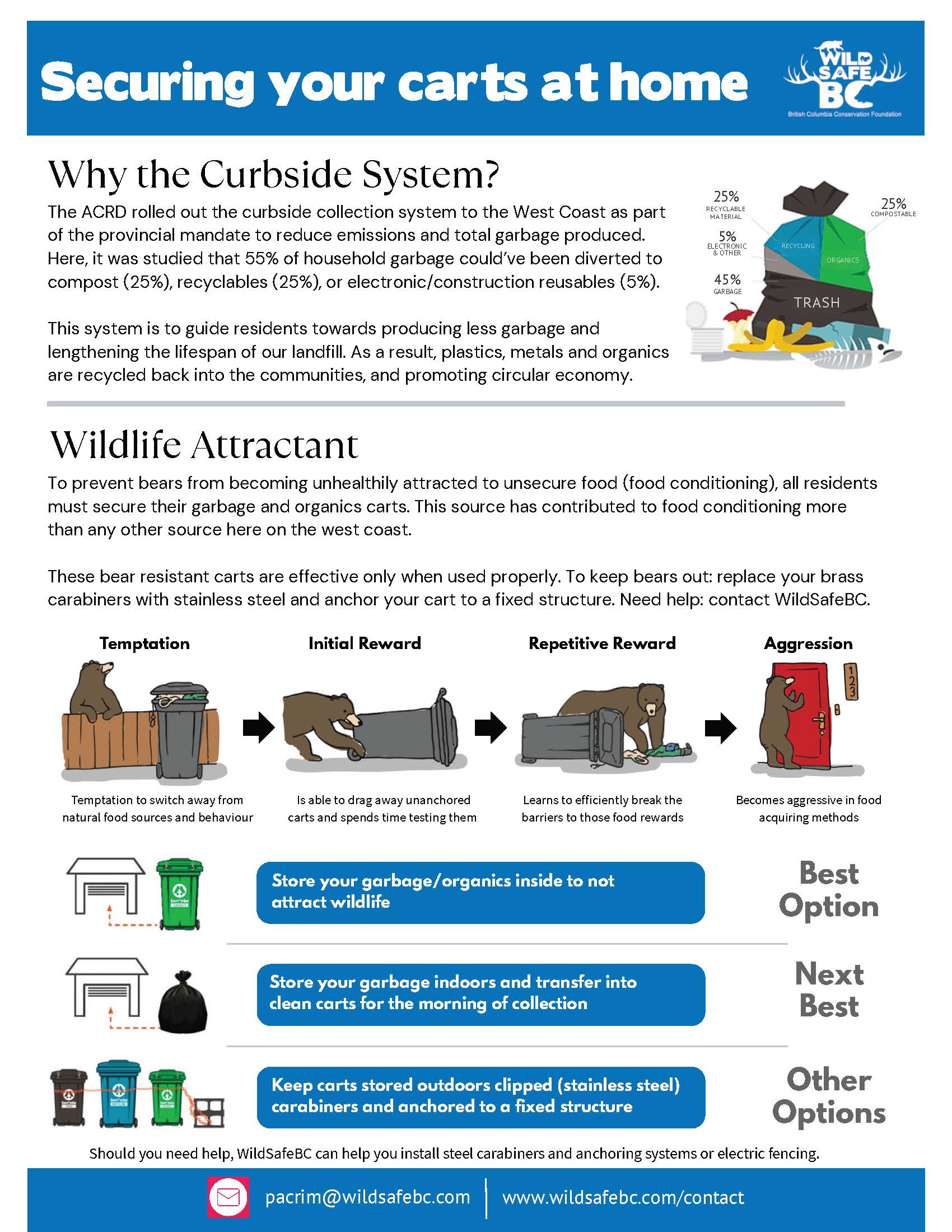 - Keep garbage and compost bins locked and anchored.