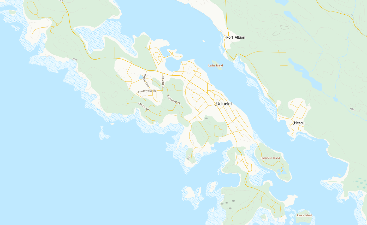 By accessing the UkeeMap information, you agree to these Terms of Use. The District of Ucluelet does not warrant or guarantee that UkeeMap’s content is current or accurate and you use UkeeMap at your own risk. You acknowledge that the District of Ucluelet is not responsible for the accuracy or reliability of information contained in or obtained from UkeeMap and you are solely responsible for confirming the content of UkeeMap with the relevant primary source of information. You agree to use UkeeMap solely for personal and private purposes and will not sell or licence UkeeMap information, or operate a service bureau using UkeeMap, or otherwise use, reproduce, publish or disseminate UkeeMap for commercial purposes, directly or indirectly, without the prior written consent of the District of Ucluelet and the holder of applicable copyrighted information. These Terms of Use may be changed for any reason and at any time without notice to you.